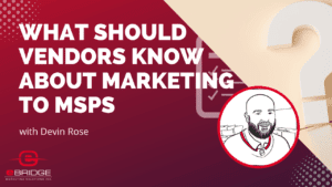 Vendors wishing to utilize MSPs to market their products or services at scale need to understand the distinct set of marketing challenges they’ll be facing. Join Devin Rose for 5 practical tips you can apply to your channel marketing programs. Watch the webinar and read the blog at www.ebridgemarketingsolutions.com.